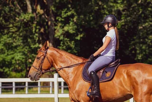 No necesitas el equipo completo para comenzar. ¿Tienes pantalones largos, ajustados y sin costuras en las rodillas, y botas? En la mayoría de los clubes eso es suficiente para tus primeras clases. El casco de equitación es obligatorio, pero a menudo puedes usar o alquilar uno en el club.