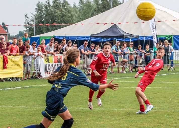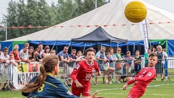 ¿Has oído hablar del krachtbal? Este deporte fue inventado por un profesor de educación física belga y existe desde hace casi 60 años. El krachtbal se juega entre 2 equipos de 4 jugadores cada uno, en un campo de juego rectangular con una zona de gol en cada extremo. El objetivo es lanzar la pelota hacia la zona de gol del equipo contrario con un máximo de cuatro lanzamientos.